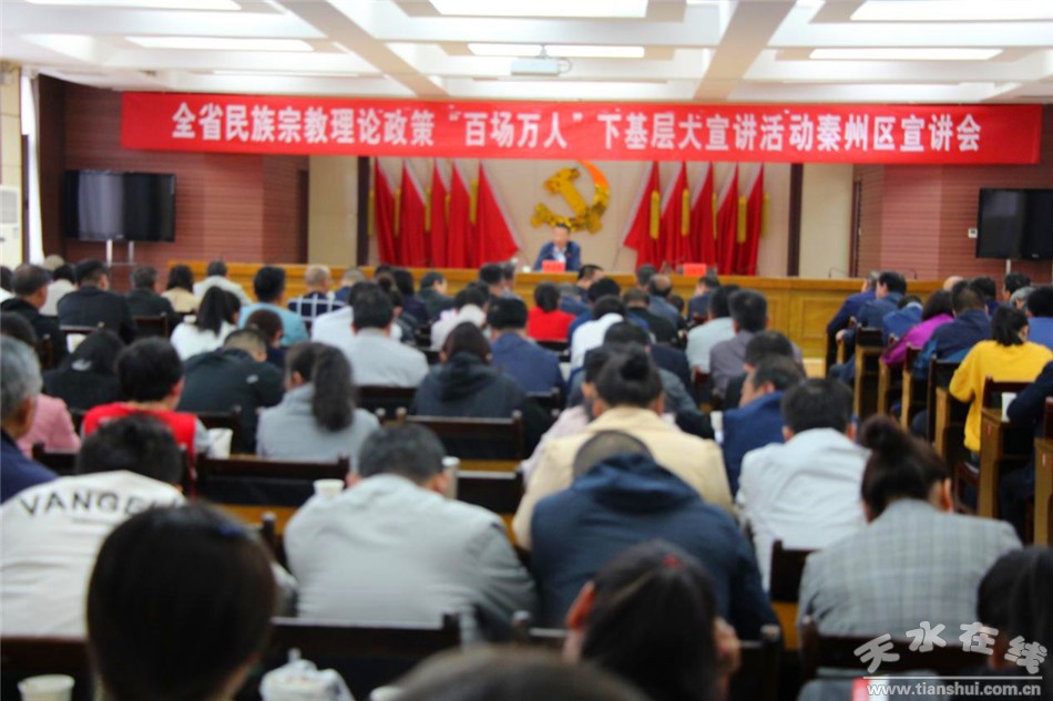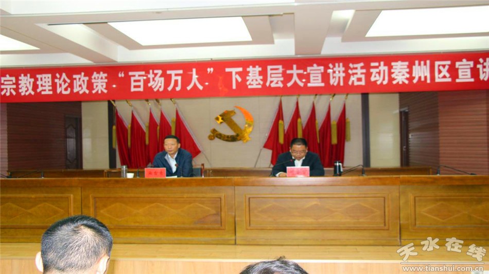 秦州區(qū)委常委、副區(qū)長趙輝,秦州區(qū)人大副主任徐生明,秦州區(qū)政協(xié)副主席李紅軍出席宣講會。秦州區(qū)委常委、統(tǒng)戰(zhàn)部部長劉睿智主持宣講會。