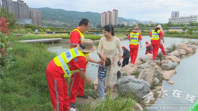 記者在藉河風(fēng)情線看到,各色鮮花次第綻放,景觀美化讓人耳目一新;天水湖的工作人員正在清理河道內(nèi)的死角垃圾,打撈河面的漂浮物,并對沿線的公共設(shè)施進(jìn)行全面清洗。