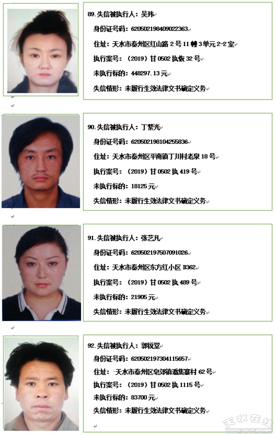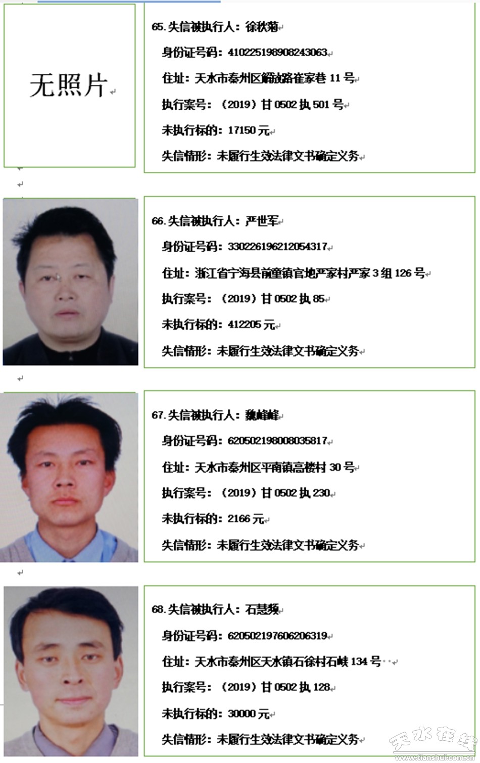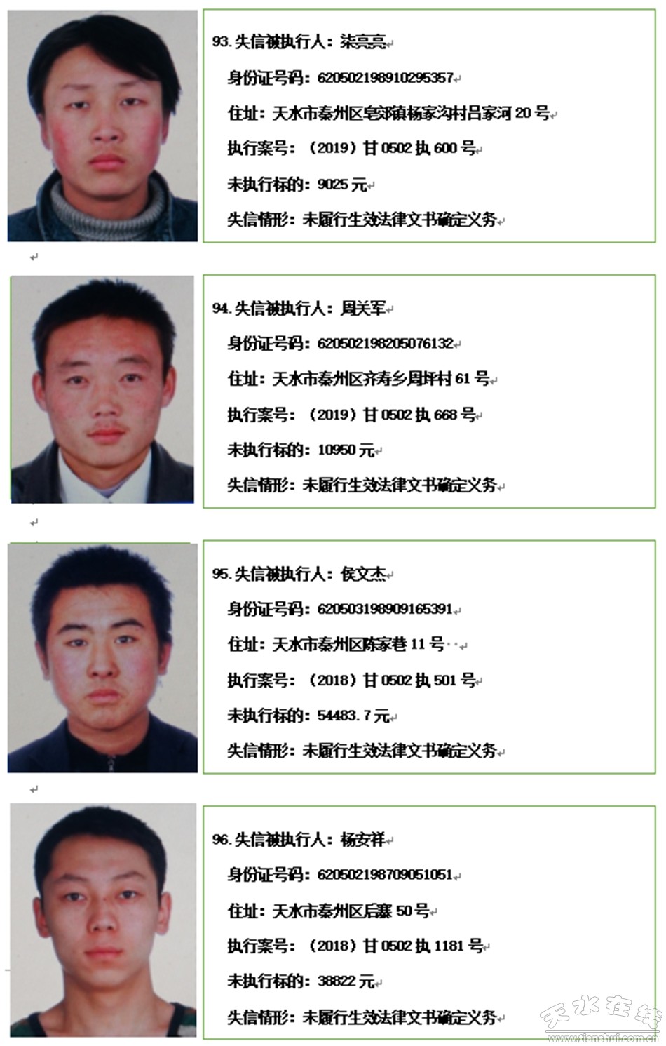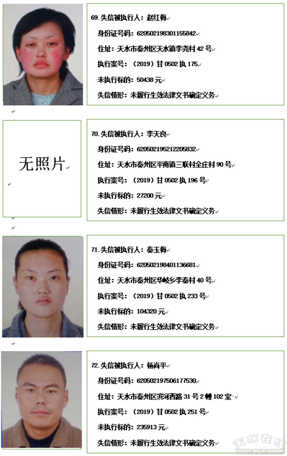 五、歡迎廣大人民群眾向天水市秦州區(qū)人民法院執(zhí)行指揮中心舉報被執(zhí)行人的財產(chǎn)線索和下落,監(jiān)督限制被執(zhí)行人的消費和經(jīng)營行為。監(jiān)督舉報電話:0938-8214290。