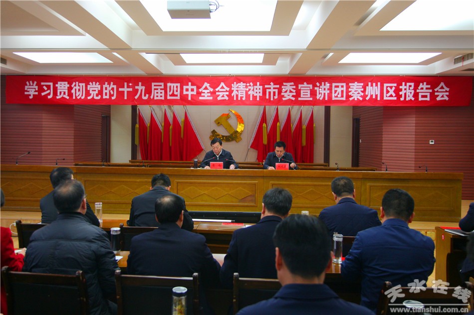 秦州區(qū)融媒體中心12月26日訊(記者 魏朝輝)12月26日,黨的十九屆四中全會精神市委宣講團秦州區(qū)報告會舉行。
