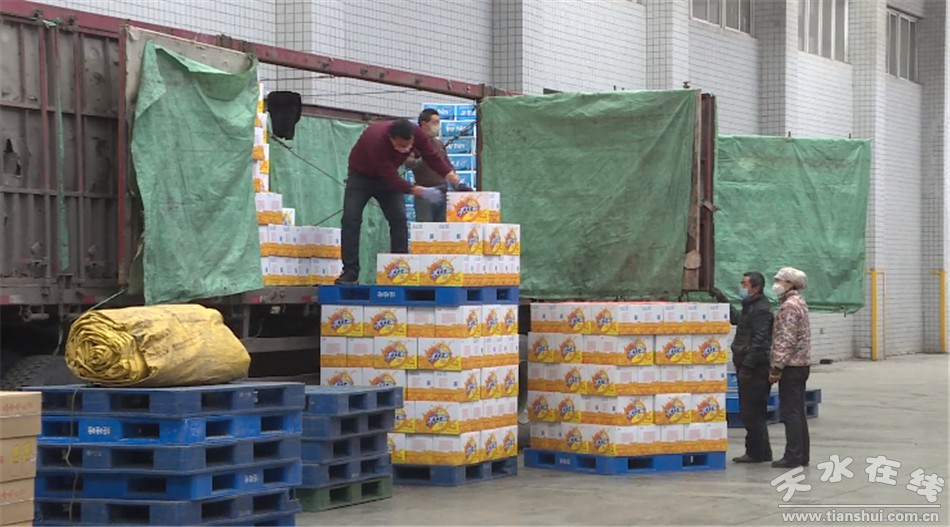在天水娃哈哈食品有限公司倉儲(chǔ)中心的倉庫內(nèi),整齊地碼放著復(fù)工后出產(chǎn)的產(chǎn)品。工人們佩戴口罩正忙著對(duì)配送各地的產(chǎn)品進(jìn)行裝車。目前,天水娃哈哈食品有限公司的工作人員已基本到崗,各生產(chǎn)線全面復(fù)工,公司正在加大馬力恢復(fù)產(chǎn)品生產(chǎn)。