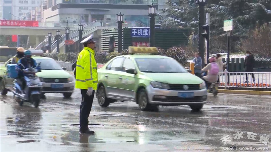 “華西什字平時車流量比較大,行人也多,針對這次雨雪天氣我們全員提前上崗,對擁堵路段進行有效疏通,確保廣大市民出行安全暢通。”秦州城區(qū)交警大隊一中隊輔警王文文說。