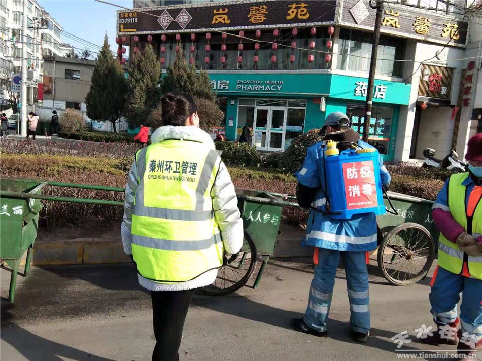 秦州區(qū)融媒體中心1月14日訊 近日,秦州區(qū)城鄉(xiāng)環(huán)衛(wèi)治理中心嚴(yán)密部署,多措并舉提高城市環(huán)境衛(wèi)生質(zhì)量,加強(qiáng)公共環(huán)境衛(wèi)生管理和城市重點(diǎn)公共區(qū)域、城市公廁的消毒防疫措施,積極落實(shí)疫情防控責(zé)任,高質(zhì)量、嚴(yán)要求做好疫情環(huán)衛(wèi)保潔工作,構(gòu)筑抵御疫情的嚴(yán)密防線。