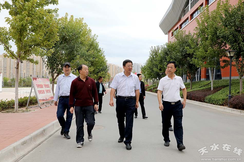 伴著朗朗讀書聲和新生軍訓(xùn)的口號(hào)聲,王東紅先后來到太京中學(xué)、藉口中學(xué)、天水市第三中學(xué),實(shí)地察看了校園安全和環(huán)境衛(wèi)生,并走進(jìn)教室、宿舍、食堂了解學(xué)生日常學(xué)習(xí)和生活情況!皫熧Y配備情況怎么樣?”“食宿方面管理得怎么樣?”王東紅仔細(xì)詢問學(xué)校存在的問題和困難,并就有關(guān)情況與學(xué)校負(fù)責(zé)人進(jìn)行深切交談。