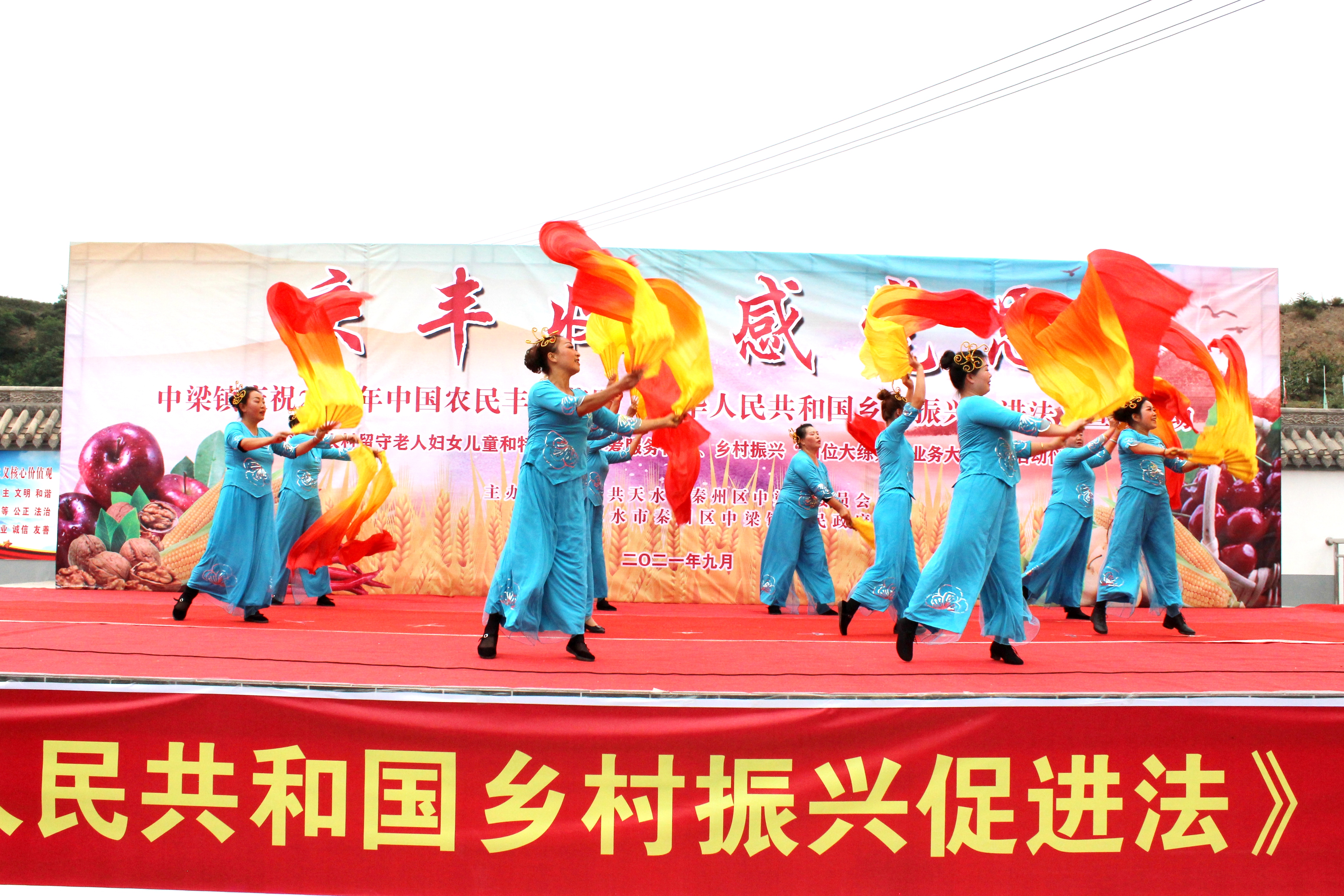 9月22日,中梁鎮(zhèn)舉辦“慶豐收·感黨恩”2021年中國農(nóng)民豐收節(jié)活動。活動現(xiàn)場歡聲笑語、高潮迭起,舞蹈《紅紅火火》《好日子》《在希望的田野上》和秦腔《祝!凡┑门_下的聲聲喝彩。天水書畫協(xié)會向中梁鎮(zhèn)贈送了書畫作品和書籍,并舉行了中梁花牛蘋果線上線下銷售鎮(zhèn)長代言、吃蘋果大賽、抖音短視頻拍攝等內(nèi)容豐富多彩的活動。
