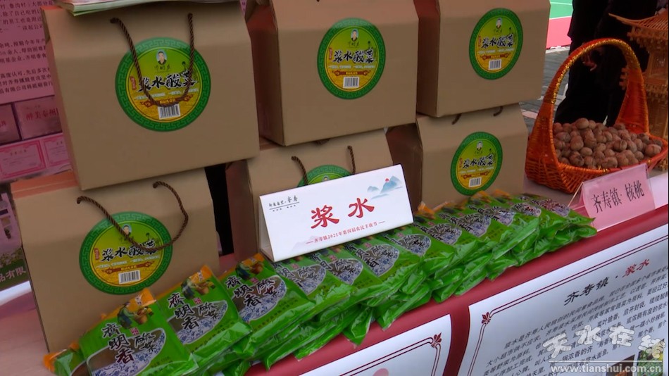 在現(xiàn)場(chǎng),后寺村土蜂蜜、竹編、堅(jiān)山村齊明香酸菜、曹集村花椒以及松李村大棚蔬菜等農(nóng)特產(chǎn)品紛紛亮相,為當(dāng)?shù)厝罕娞峁┝艘粋(gè)展示自己勞動(dòng)成果的舞臺(tái)。為了保障全鎮(zhèn)農(nóng)特產(chǎn)品的銷路,齊壽鎮(zhèn)和中國(guó)郵政天水市秦州區(qū)分公司簽訂了戰(zhàn)略合作協(xié)議,為農(nóng)特產(chǎn)品銷售保駕護(hù)航。