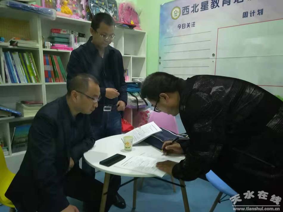 秦州區(qū)融媒體中心10月5日訊 (記者劉武鋒)為貫徹落實“雙減”政策,切實減輕中小學(xué)生課外負(fù)擔(dān),全面規(guī)范校外培訓(xùn)機(jī)構(gòu)經(jīng)營管理,國慶期間,秦州區(qū)教育局聯(lián)合公安、市場監(jiān)管、應(yīng)急管理、消防大隊、綜合執(zhí)法等相關(guān)部門組成聯(lián)合執(zhí)法組,通過明察暗訪的形式對全區(qū)校外培訓(xùn)機(jī)構(gòu)進(jìn)行為期3天的專項整治。