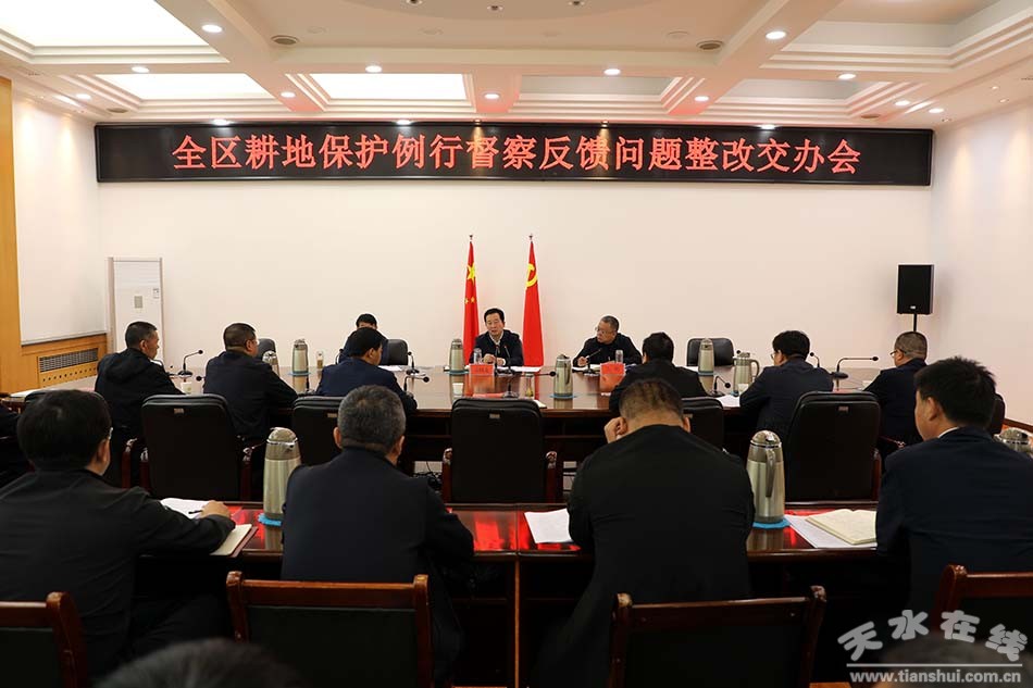 會(huì)議宣讀了《2021年天水市秦州區(qū)耕地保護(hù)例行督察反饋問(wèn)題整改方案》,并就相關(guān)問(wèn)題整改工作進(jìn)行了全面安排部署。(編輯 陳每陽(yáng)) |