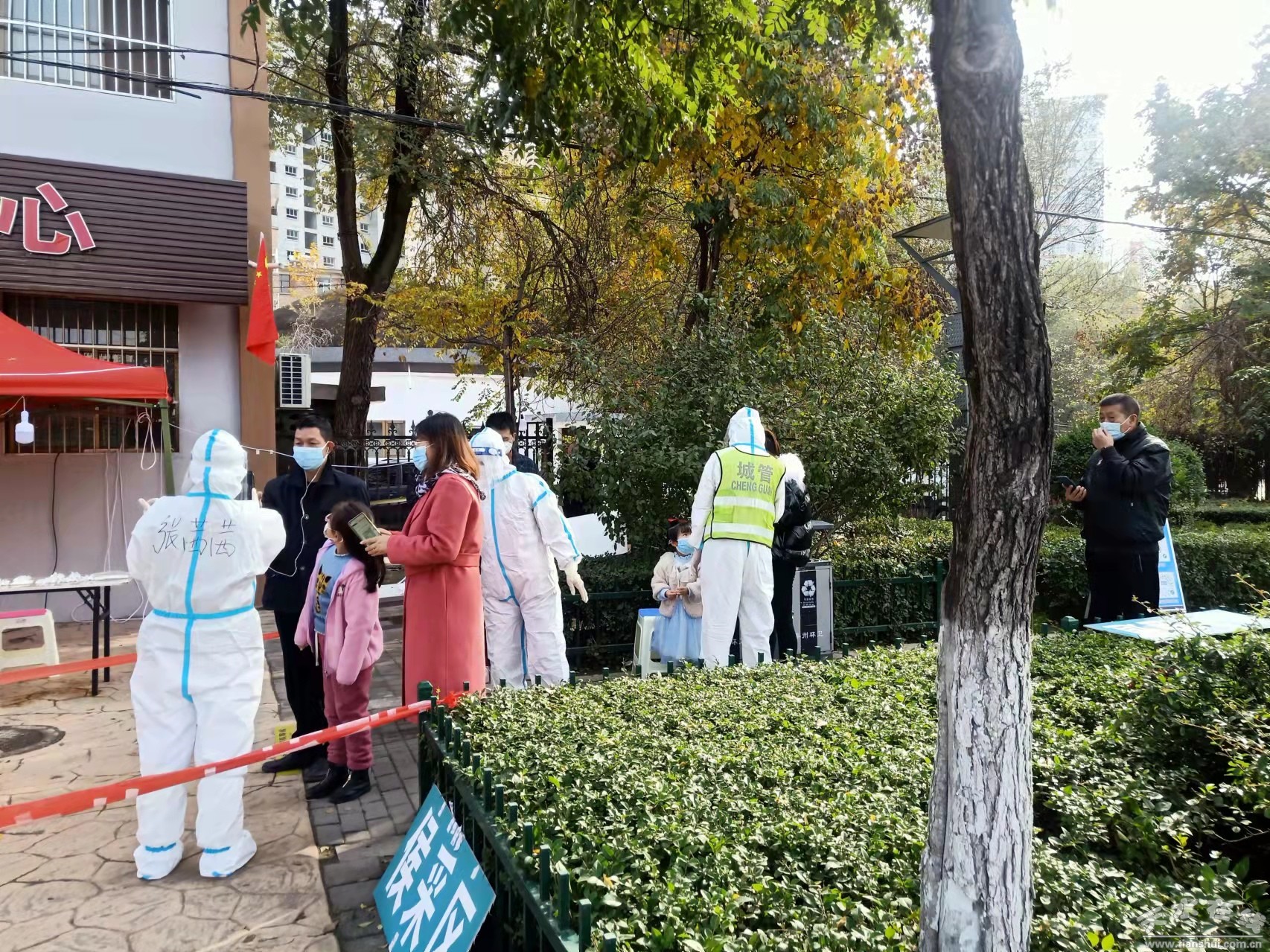“請(qǐng)保持1米線的間隔距離”、“請(qǐng)?zhí)崆按蜷_健康碼、戴好口罩”;城區(qū)7個(gè)辦事處123個(gè)核酸檢測(cè)采集點(diǎn)上,城管隊(duì)員不停的提醒告知大家,維護(hù)秩序,每一輪全員檢測(cè),采樣點(diǎn)上,始終都有他們忙碌、疲憊的身影。