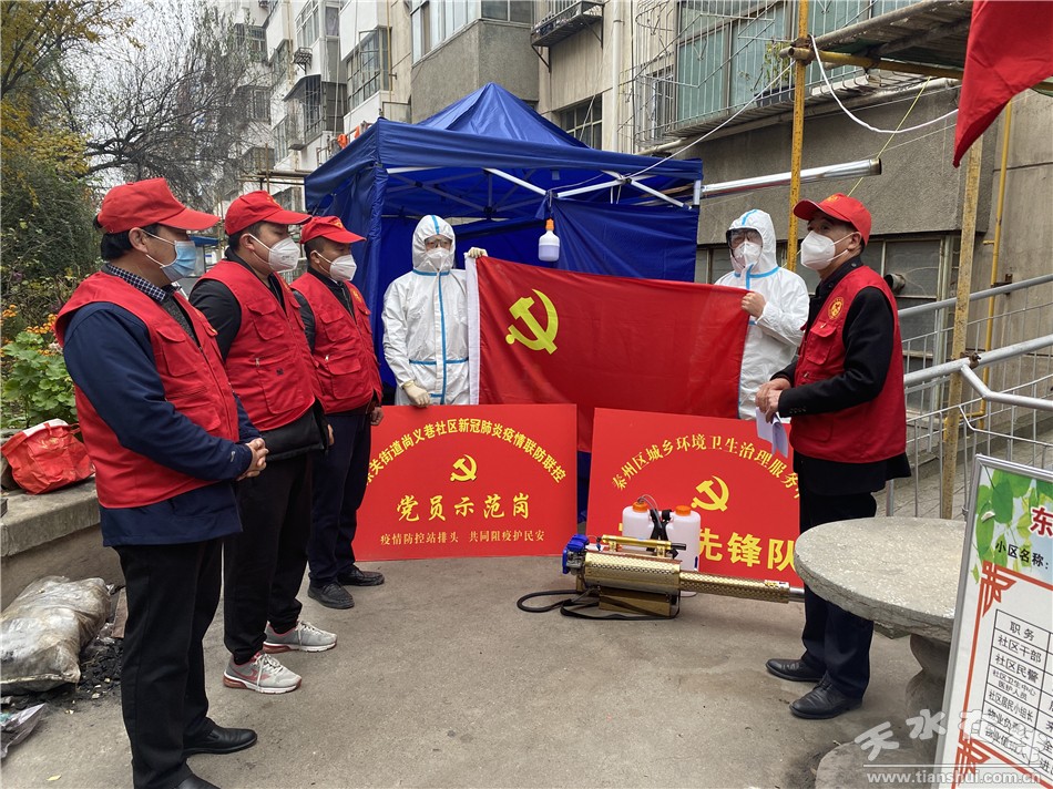 秦州區(qū)融媒體中心11月6日訊 面臨當(dāng)前疫情防控的嚴(yán)峻形勢,秦州區(qū)城鄉(xiāng)環(huán)衛(wèi)治理服務(wù)中心積極響應(yīng)上級黨組織的號召,在8個(gè)包保值守小區(qū)成立臨時(shí)黨小組,充分發(fā)揮黨員先鋒模范作用,讓黨旗在“疫”線高高飄揚(yáng)。在臨時(shí)黨小組的帶領(lǐng)下,黨員干部100余名第一時(shí)間參與社區(qū)參與疫情防控工作,明確工作職責(zé),理清工作思路,統(tǒng)籌安排力量,全力當(dāng)好疫情防控的“宣傳員”、重點(diǎn)人群的“排查員”、核酸檢測的“服務(wù)員”,積極參與社區(qū)卡口值守、重點(diǎn)人員排查、所有居民核酸檢測情況摸排和秩序保障等工作,堅(jiān)決守牢疫情防控“神經(jīng)末梢”。組織黨員干部沖鋒在疫情防控的小區(qū)值守點(diǎn)、城市重點(diǎn)公共區(qū)域消殺點(diǎn)等疫情防控的一線前沿,24小時(shí)輪班值守在小區(qū)卡點(diǎn),為進(jìn)出小區(qū)的人員登記測溫,對小區(qū)內(nèi)的公共空間、樓道內(nèi)外開展消殺,信守黨員承諾,堅(jiān)決守護(hù)小區(qū)居民的安全和健康。真正做到“哪里需要哪里就有黨組織,哪里危急哪里就有黨組織!痹谧疃虝r(shí)間內(nèi)凝聚合力、激發(fā)活力,為疫情防控各項(xiàng)工作有序開展提供堅(jiān)強(qiáng)組織保障。