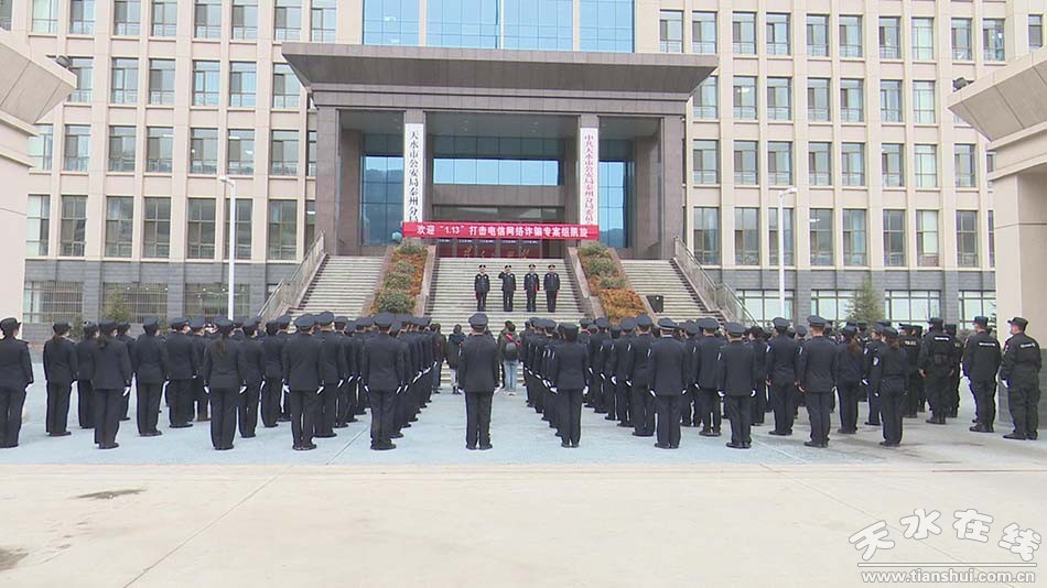 在專案組凱旋歡迎儀式上,受副市長、市公安局黨委書記、局長郭慶祥委托,市公安局黨委委員、副局長李世和,副區(qū)長、公安分局黨委書記、局長馬小軍向凱旋歸來的專案組民警送上鮮花,向參與研判、抓捕、押解的全體人員表示崇高敬意并致以親切慰問。