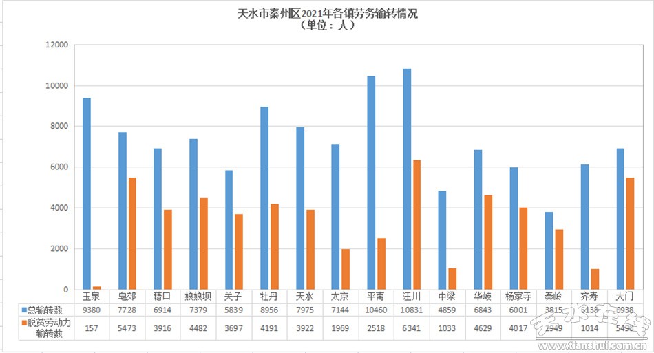 2021年,秦州區(qū)累計輸轉(zhuǎn)農(nóng)村勞動力11.72萬人,完成全年任務(wù)11.55萬人的101.47%,同比增長1.3%;輸轉(zhuǎn)脫貧勞動力5.5798萬人,同比增長3.33%。
