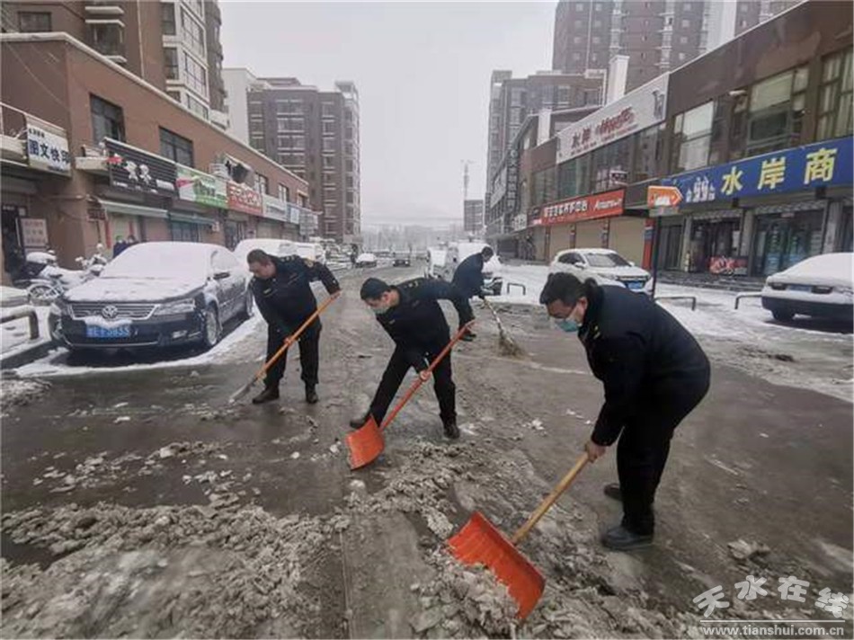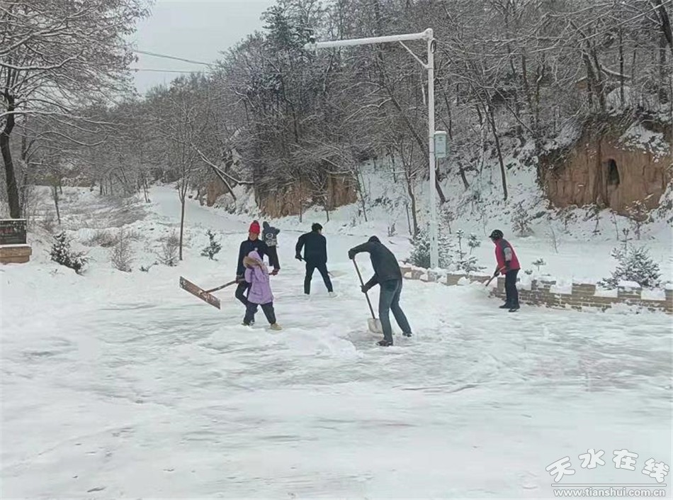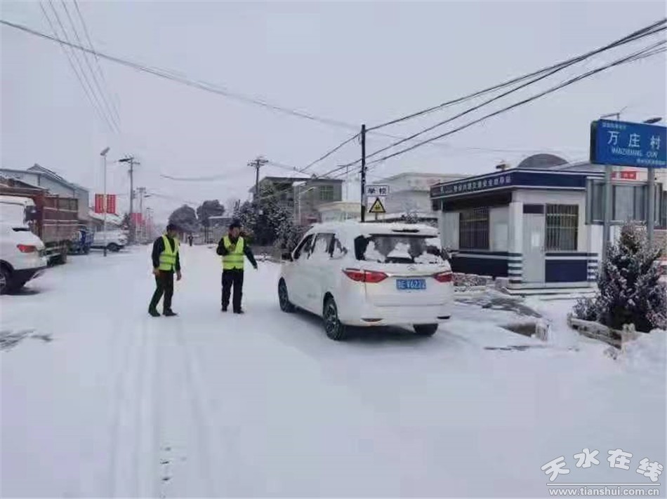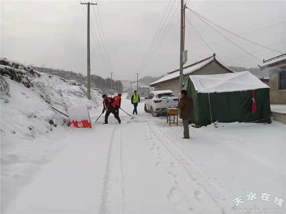 在天水鎮(zhèn),1月27日一大早,鎮(zhèn)機關(guān)干部和各村村民積極響應(yīng),迎雪而動,大家不畏天寒地滑,拿著鐵鍬掃帚,齊心協(xié)力對進村主干道,村內(nèi)巷道,房前屋后,進行掃雪除冰,保證了群眾的安全出行。同時,鎮(zhèn)交管站,派出所,交警中隊上路開展安全勸導(dǎo),各村也設(shè)立勸導(dǎo)站,對駕車或騎車出行的村民進行了勸返。