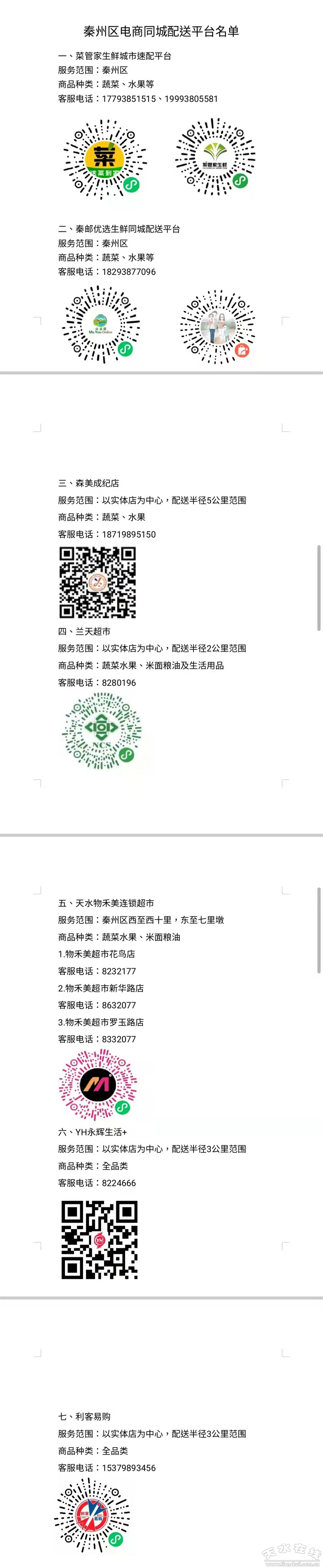 2.秦州區(qū)電商同城配送平臺(tái)名單 3.秦州區(qū)疫情期間保供藥店名單