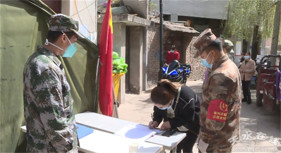 在天水郡街道橋一溝疫情防控卡點(diǎn),一名年輕人正在和其他工作人員一起對(duì)出入人員進(jìn)行體溫檢測,并引導(dǎo)他們掃碼登記。這名年輕人名叫李波波,為西部戰(zhàn)區(qū)西藏某旅的一名現(xiàn)役軍人。前不久,剛休假回家探親的他因疫情原因暫時(shí)無法返回部隊(duì),為此,他第一時(shí)間加入?yún)^(qū)退役軍人志愿服務(wù)隊(duì),投身疫情防控第一線。