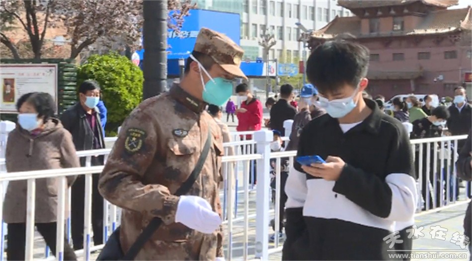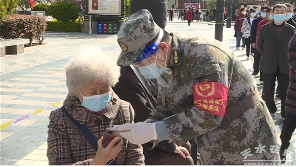 在龍城廣場核酸檢測采樣點(diǎn),秦州區(qū)退役軍人志愿服務(wù)隊(duì)的志愿者們正在忙著查看“兩碼”、引導(dǎo)群眾進(jìn)行信息錄入、維護(hù)現(xiàn)場秩序,進(jìn)一步確保核酸檢測采樣工作精準(zhǔn)、高效、順利進(jìn)行。