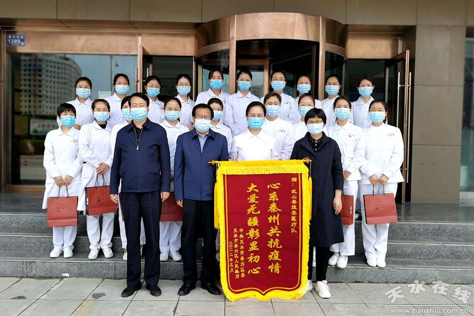 慰問中,慰問組為各醫(yī)療隊送上了“心系秦州共抗疫情 大愛無疆彰顯初心”的錦旗,向每位醫(yī)護人員贈送了紀念品和感謝信并合影留念。(編輯 陳每陽)