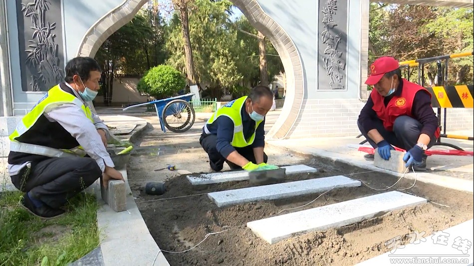 同時,秦州區(qū)園林部門還對園林設(shè)施進(jìn)行維修。日前,記者在人民公園看到,維修人員正在對松動、破損的雨花石路面進(jìn)行重新修復(fù)填補(bǔ)。