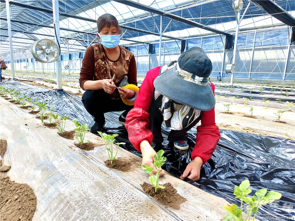 秦州區(qū)融媒體中心5月20日訊 5月19日,在秦州區(qū)天水鎮(zhèn)西瓜小鎮(zhèn)連棟溫室大棚內(nèi),一行行栽植不久的麒麟西瓜苗茁壯成長,工人們正在瓜行間覆保溫保濕膜,這也是天水鎮(zhèn)打造的特色果品小鎮(zhèn)的重要組成部分之一。