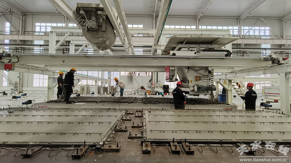 走進(jìn)天水裝配式建筑產(chǎn)業(yè)園,規(guī)模宏大的裝配式建筑生產(chǎn)廠房、現(xiàn)代化預(yù)制構(gòu)件生產(chǎn)線、高科技預(yù)制構(gòu)件運(yùn)輸流水線,讓人耳目一新。在PC車間內(nèi),鋼筋制作、模具澆筑、產(chǎn)品脫模等多道工序環(huán)環(huán)相扣,生產(chǎn)流水線上一派繁忙景象。