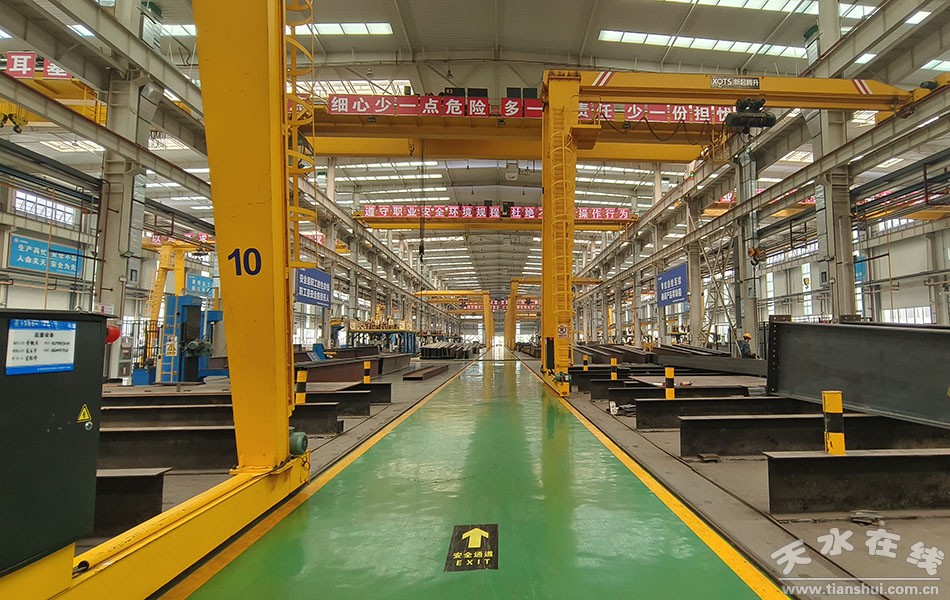 “現(xiàn)場所用到的所有構(gòu)件,如鋼梁、鋼柱、鋼板墻、鋼樓梯都是由我單位天水裝配式產(chǎn)業(yè)園PS車間加工生產(chǎn),利用裝配式建筑它不僅能夠滿足高跨度,抗震性能也是非常優(yōu)越的。我們所看到的現(xiàn)場的樓板也是采用了PS車間所生產(chǎn)的鋼筋桁架樓承板,使用這種樓板大大節(jié)省了施工現(xiàn)場的人力、物力!碧焖胁┪镳^項(xiàng)目鋼結(jié)構(gòu)負(fù)責(zé)人文明強(qiáng)說。