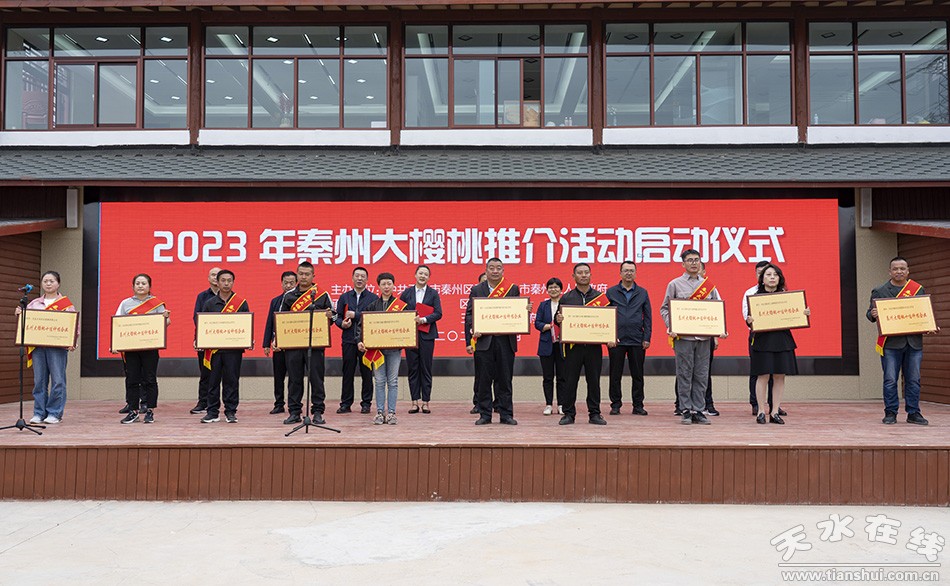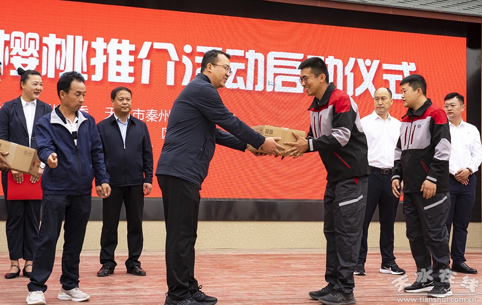 啟動(dòng)儀式上,對(duì)全區(qū)2022年秦州大櫻桃十佳種植企業(yè)進(jìn)行了表彰,宣介了秦州大櫻桃快遞服務(wù)優(yōu)惠政策,并向?yàn)槲沂幸咔榉揽刈龀鲋卮筘暙I(xiàn)的華天集團(tuán)董事長(zhǎng)肖勝利、SOHO中國(guó)執(zhí)行董事潘石屹,以及為秦州大櫻桃宣傳推介作出貢獻(xiàn)的“秦州大櫻桃”公益代言人郭霽紅、順豐集團(tuán)副總裁許志君贈(zèng)送今年首單“秦州大櫻桃”。