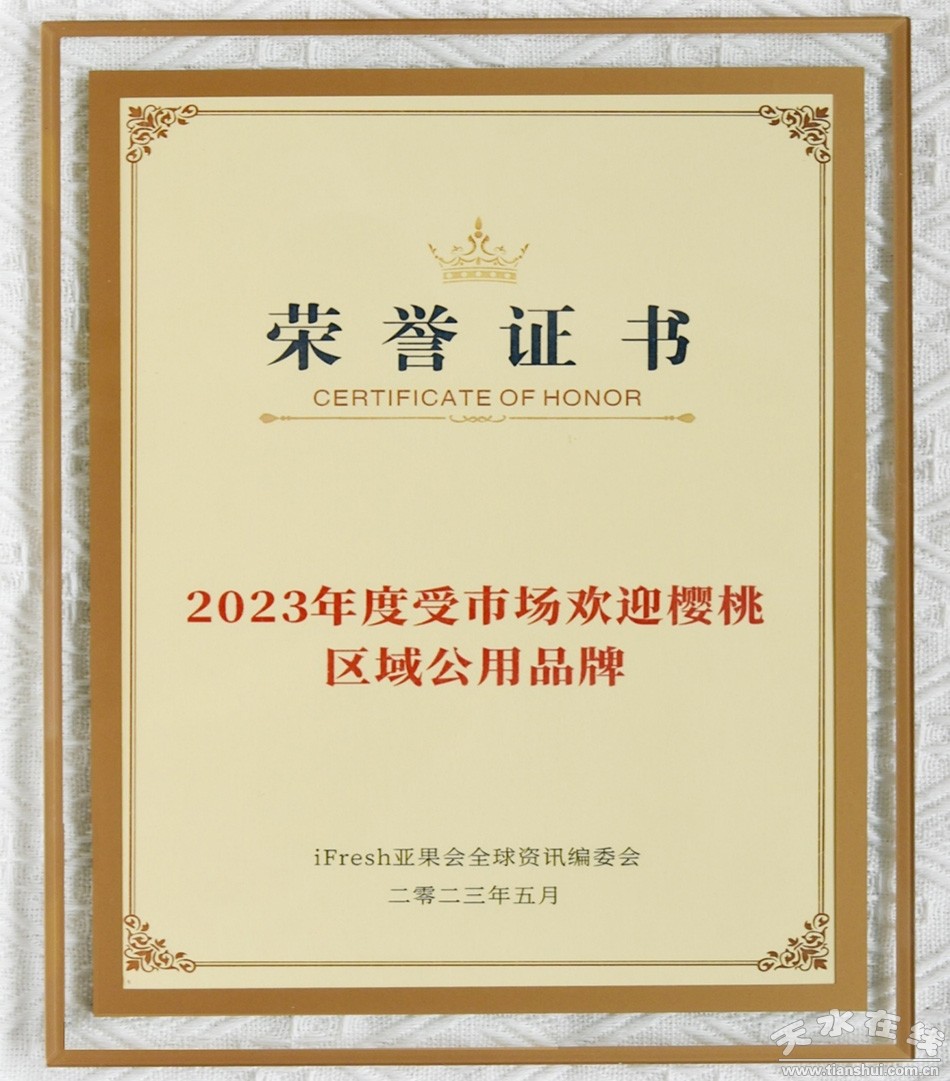 秦州區(qū)融媒體中心5月30日訊 日前,由第九屆國(guó)際櫻桃大會(huì)組委會(huì)指導(dǎo),中國(guó)果品流通協(xié)會(huì)、中國(guó)園藝學(xué)會(huì)櫻桃分會(huì)、金華市供銷合作聯(lián)合社及iFresh亞果會(huì)四方聯(lián)合主辦的第二屆中國(guó)櫻桃品牌大會(huì)暨全國(guó)櫻桃產(chǎn)銷對(duì)接大會(huì)在浙江金華舉行,會(huì)上秦州大櫻桃獲得“2023年度受市場(chǎng)歡迎的果品區(qū)域公用品牌20強(qiáng)”殊榮。