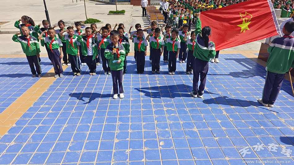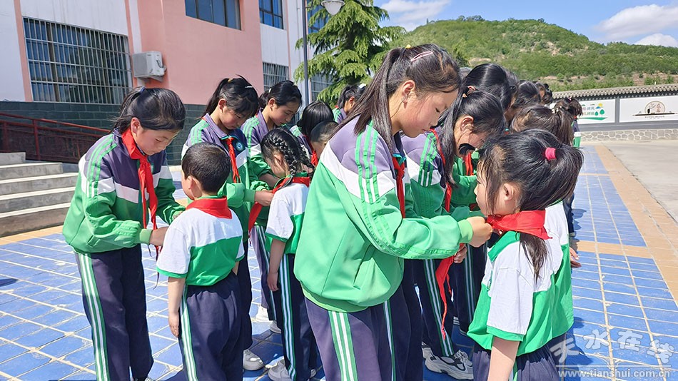活動中,全體少先隊員高唱隊歌,在活潑又昂揚的旋律中,輔導員老師和老隊員為新隊員鄭重地戴上紅領(lǐng)巾,新隊員們面向隊旗莊嚴宣誓,他們撫摸著胸前鮮艷的紅領(lǐng)巾,臉上露出燦爛的笑容。
