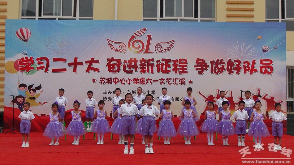 蘇城中心小學(xué)舉行了慶“六一”文藝匯演活動(dòng)。演出在六年級(jí)同學(xué)的腰鼓表演中拉開(kāi)了帷幕,緊接著舉行了全體唱國(guó)歌儀式。各班的節(jié)目真是百花齊放,各有千秋。有兒童舞蹈《一年級(jí)》《大夢(mèng)想家》、合唱《大中國(guó)》等;四年級(jí)群舞《孩子的天空》;經(jīng)典朗誦《少年中國(guó)說(shuō)》;獨(dú)舞表演《絲路幻影》;五年級(jí)的舞蹈《童心向黨》;小品、健美操等。舞臺(tái)上小演員們的表演惟妙惟肖;舞臺(tái)下,家長(zhǎng)們紛紛拿起相機(jī)、手機(jī)記錄每一個(gè)精彩的瞬間。一個(gè)個(gè)風(fēng)格迥異,獨(dú)特別致的節(jié)目將演出推向了一個(gè)又一個(gè)高潮。學(xué)校的操場(chǎng)成了一個(gè)巨大的舞臺(tái),歌聲傳遞心聲,掌聲伴著笑聲,孩子們天真活潑的表演,博得了臺(tái)下師生和家長(zhǎng)的陣陣掌聲。