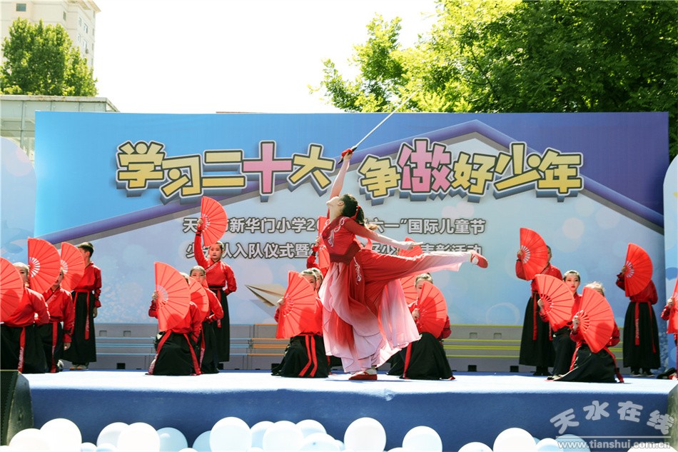 近日,新華門小學(xué)舉行“學(xué)習(xí)二十大 爭(zhēng)做好少年”為主題的慶“六一”活動(dòng)暨新隊(duì)員入隊(duì)儀式。 演出在歡快的組舞《炫彩驕陽(yáng)》中拉開了帷幕,本次演出以“贊美新時(shí)代,童心向未來”為主旋律,節(jié)目涵蓋了舞蹈、器樂合奏、合唱、情景劇、武術(shù)、朗誦、國(guó)風(fēng)展示等多種藝術(shù)形式。小演員們優(yōu)美嘹亮的歌聲、婀娜多姿的舞蹈、精彩紛呈的才藝,充分展示了新華門小學(xué)生朝氣蓬勃的精神風(fēng)貌。