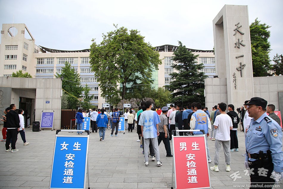 上午八點,記者在天水一中考點看到,校門口設(shè)置了警戒線,考生依次出示證件,通過各項檢查后,從容自信,走進考場。