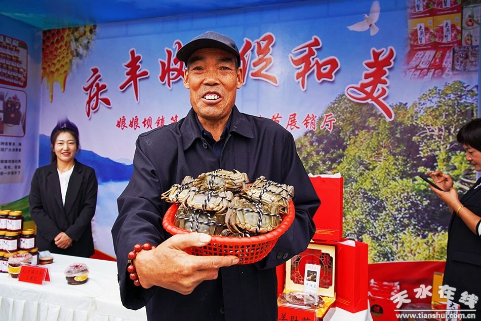 “我們自己家養(yǎng)的螃蟹,今天來參加豐收節(jié),展示我們的螃蟹,一個多小時之內(nèi)賣出去了100多箱,訂購了200多箱。”天水市秦州區(qū)炬晟蟹養(yǎng)殖農(nóng)民專業(yè)合作社負(fù)責(zé)人王維維說。