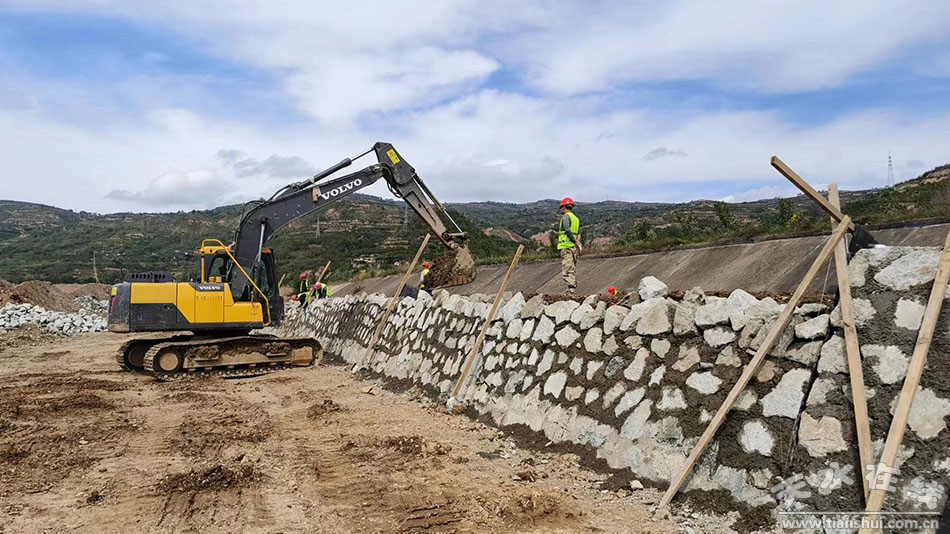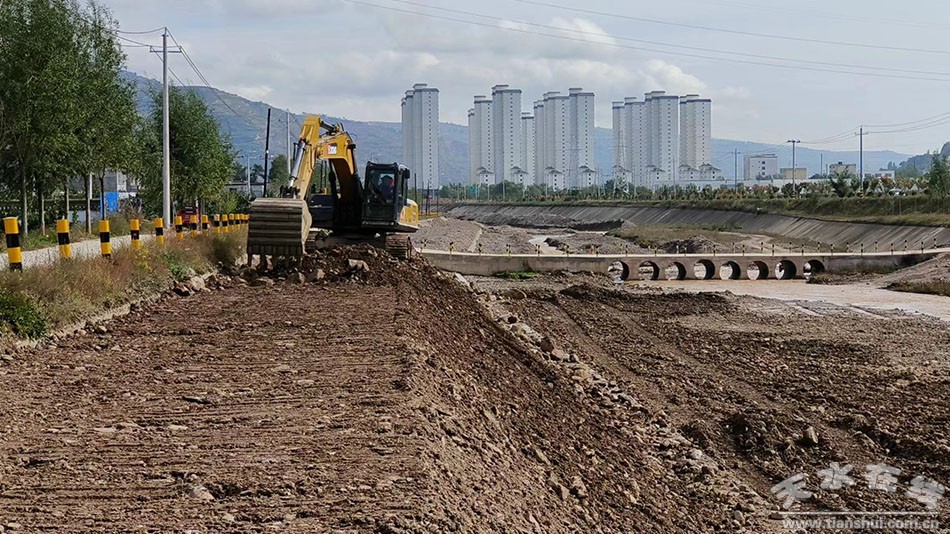 10月9日,記者在秦州區(qū)水系連通及水美鄉(xiāng)村建設(shè)縣項目金家河段建設(shè)現(xiàn)場看到,河道下部擋土墻已全部完工,工人們正在大型機械的配合下進行堤身填筑。施工現(xiàn)場負(fù)責(zé)人告訴記者,金家河段總治理長度為9公里,目前已經(jīng)完成了工程量的30%。