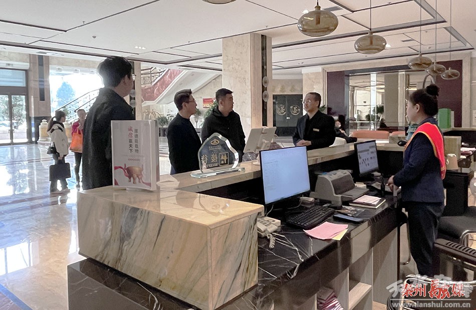 檢查組先后來到皇城國(guó)際飯店、華辰大酒店、天水賓館等地,重點(diǎn)對(duì)酒店入住情況、客房?jī)r(jià)格、消防安全、員工培訓(xùn)教育等情況進(jìn)行檢查,要求企業(yè)要維護(hù)市場(chǎng)秩序,從業(yè)人員要做到態(tài)度熱情主動(dòng)、業(yè)務(wù)技能熟練、不斷提升文旅行業(yè)服務(wù)人員服務(wù)水平和整體形象。