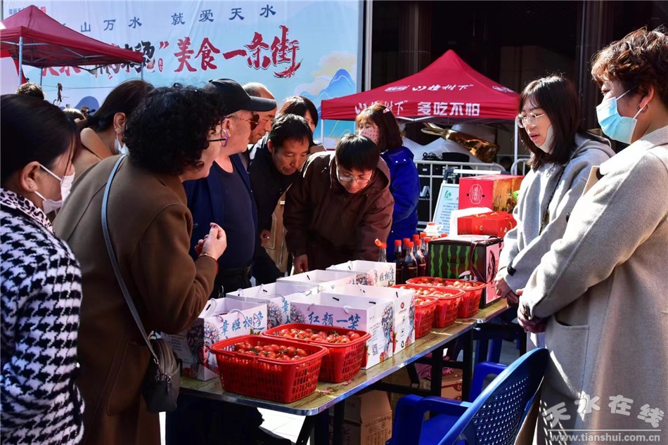 活動現(xiàn)場還設置了農(nóng)特產(chǎn)品展臺,其中草莓、圣女果、各色干果、雜糧面粉、香醋等地標產(chǎn)品內(nèi)容豐富,琳瑯滿目,吸引了許多游客前來詢問、購買,展銷區(qū)人頭攢動,格外熱鬧。天水鎮(zhèn)的志愿者們現(xiàn)場贈送游客無償品嘗,讓游客大飽眼福、口福,聽了志愿者對天水鎮(zhèn)深厚文化底蘊、三國歷史故事以及近年來建設特色果品小鎮(zhèn)的介紹,對天水鎮(zhèn)產(chǎn)生了濃厚的興趣,紛紛表示有時間一定會帶領家人來天水鎮(zhèn)休閑旅游。