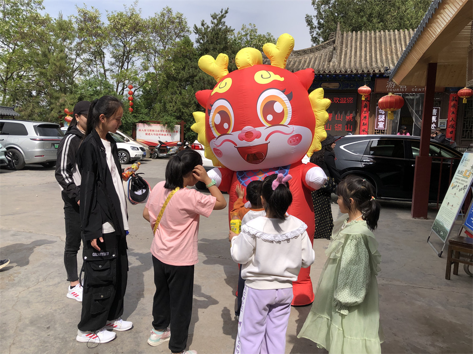 秦州吉祥物“龍娃”精彩亮相。游客中心廣場,紅衣服、黃犄角,兩腮鼓起、露著兩顆大白門牙的秦州吉祥物“龍娃”格外吸睛,它熱情地與前來參觀的游客招手互動,可愛萌態(tài)吸粉無數(shù),游客們爭相拍照合影。