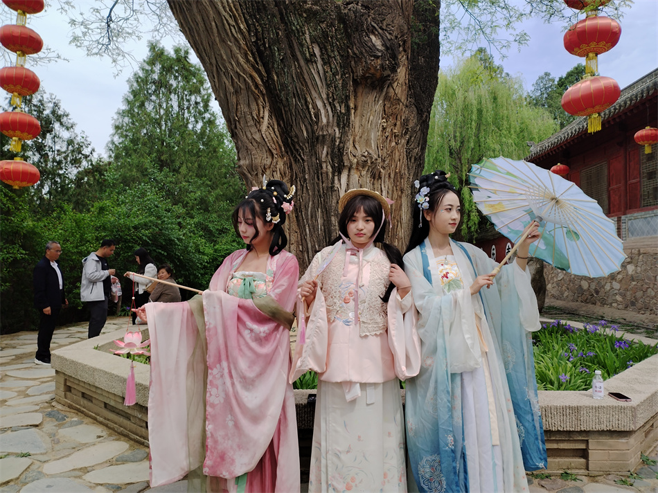 漢風(fēng)古韻秀傳承傳統(tǒng)文化。身穿漢服者齊聚南山景區(qū),開展?jié)h服游園活動。漢服佳麗們衣袂蹁躚,行禮如儀,展示了美麗大方的傳統(tǒng)漢服;景區(qū)講解員也紛紛化身漢服美女,為游客們進(jìn)行講解,成為景區(qū)里一道亮麗的風(fēng)景線。