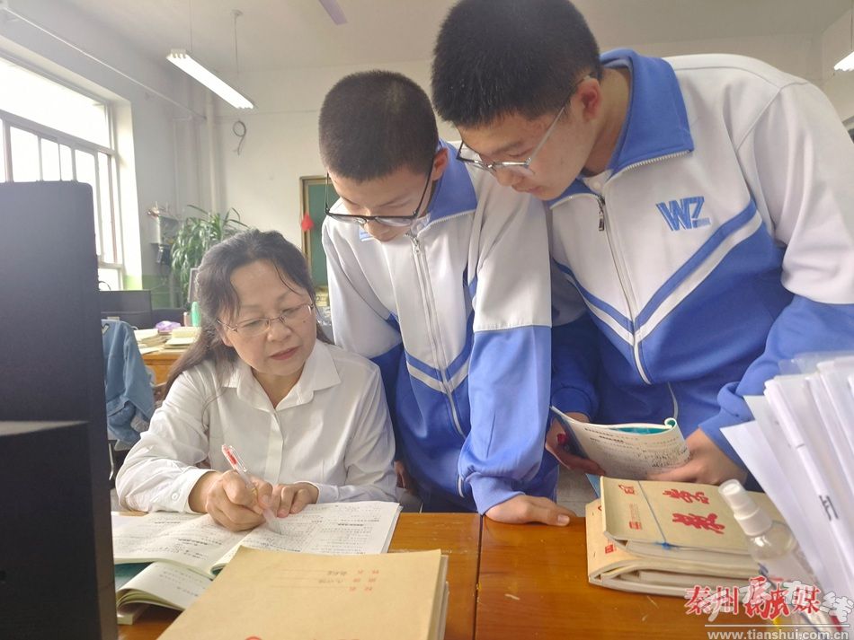 “在課后,她經(jīng)常犧牲自己的課余時(shí)間,為我們講解題,遇到有難度的題,她會(huì)不厭其煩一遍又一遍地講解,不讓每一個(gè)學(xué)生掉隊(duì)。”天水市第五中學(xué)九年級(jí)學(xué)生楊思揚(yáng)說。