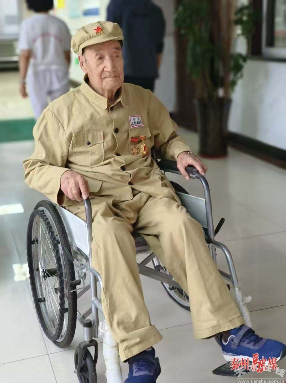 戎裝照拍攝準備就緒,鏡頭對準彭老的瞬間,原本談笑風生的他,在整理衣襟時突然緊張起來,眼神漸漸變得堅毅,仿佛又回到了當年的戰(zhàn)場。攝影師被這一幕打動,激動得連連按下快門,用鏡頭定格下這珍貴的瞬間。如今的彭德貴,是護理院里的“開心果”,總能給大家?guī)須g笑;他還是烽火故事的“傳播者”,把崢嶸歲月里的記憶代代傳遞。這次為他拍攝戎裝照,不只是定格一位老人的容顏,更是致敬一個時代的精神,讓后人銘記所有“最可愛的人”。