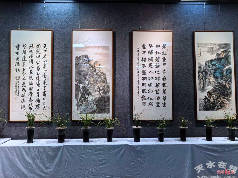 本次展覽共展出30位天水本土?xí)嫾业?0余幅精品力作,作品題材豐富,筆墨清雅、格調(diào)高遠(yuǎn),與展廳內(nèi)的蘭草盆景交相輝映、相得益彰,生動(dòng)呈現(xiàn)了中華優(yōu)秀傳統(tǒng)文化的博大精深與獨(dú)特魅力。