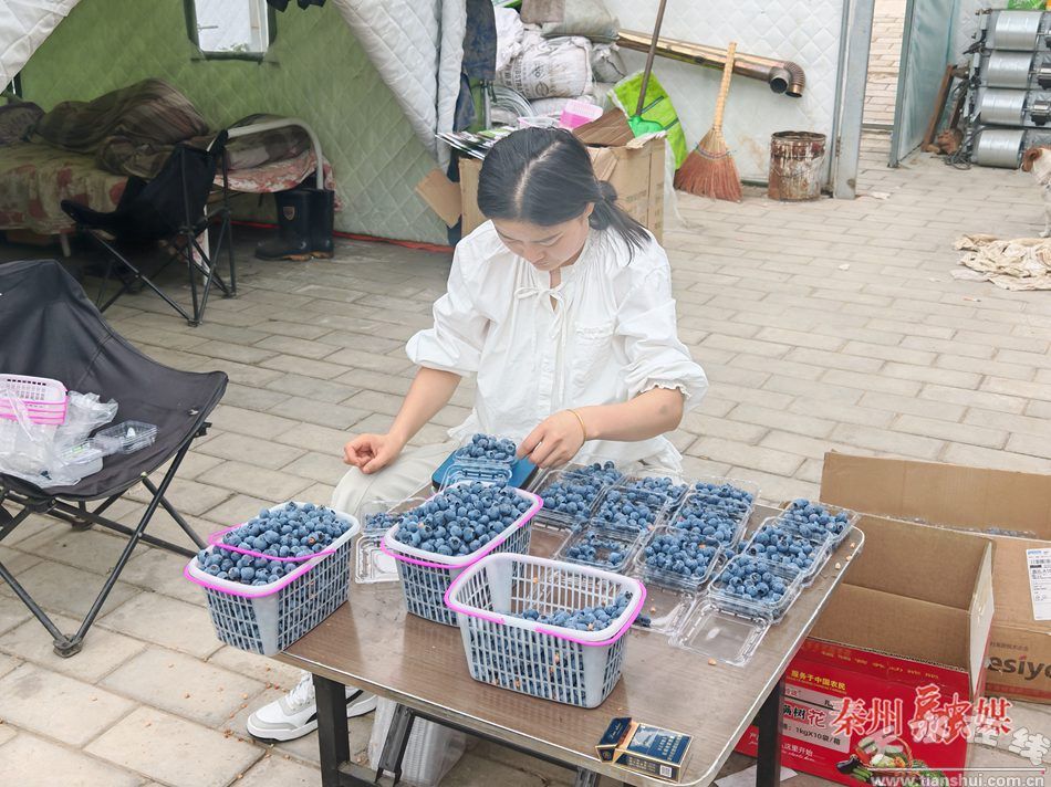 “我們這兒大概有30畝地,包括16個(gè)日光溫室大棚和1個(gè)10畝的連棟大棚,種了1萬株藍(lán)莓。目前長勢不錯,一棵樹差不多能結(jié)一斤多果子,基本上再有一個(gè)月就能大面積采摘了!睏罴宜骆(zhèn)現(xiàn)代農(nóng)業(yè)產(chǎn)業(yè)園伊美爾藍(lán)莓種植基地負(fù)責(zé)人潘輝說。
