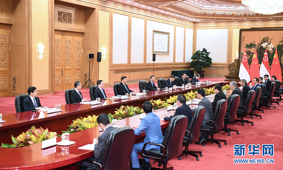 4月29日,國家主席習(xí)近平在北京人民大會堂會見新加坡總理李顯龍。 新華社記者 李學(xué)仁 攝