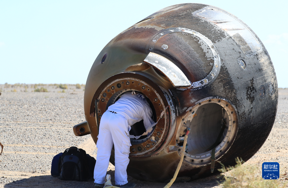 9月17日,神舟十二號(hào)載人飛船返回艙在東風(fēng)著陸場(chǎng)成功著陸。新華社記者琚振華攝