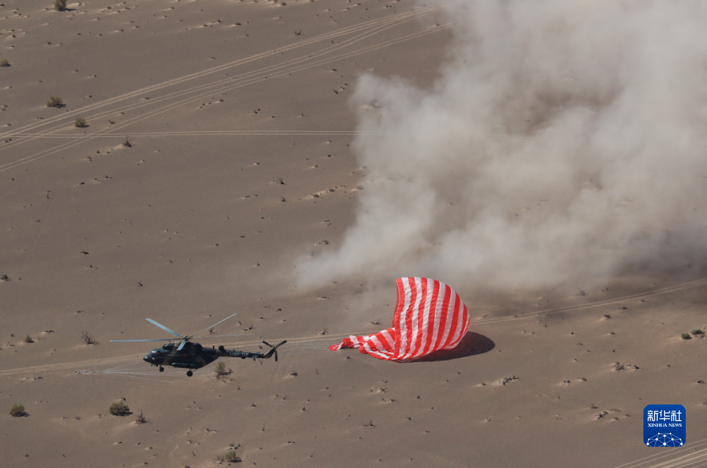 神舟十二號(hào)載人飛船返回艙反推火箭成功點(diǎn)火后,平安降落在東風(fēng)著陸場(chǎng)預(yù)定區(qū)域。這是神舟載人飛船首次在東風(fēng)著陸場(chǎng)著陸。(記者黎云、張汨汨)