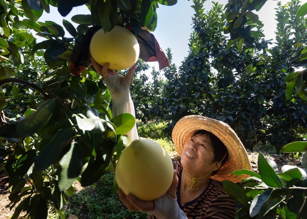 9月22日,在福建省平和縣,果農(nóng)在柚子園里采摘蜜柚。新華社發(fā)(李潤南攝)