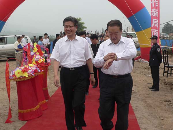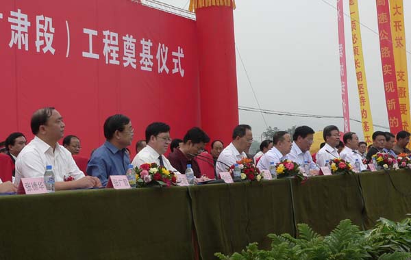 甘肅省委常委、常務(wù)副省長徐守盛宣布天寶高速公路奠基儀式開始,介紹參加奠基儀式的領(lǐng)導(dǎo)和來賓: