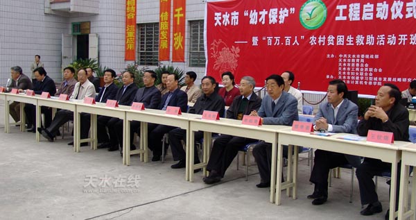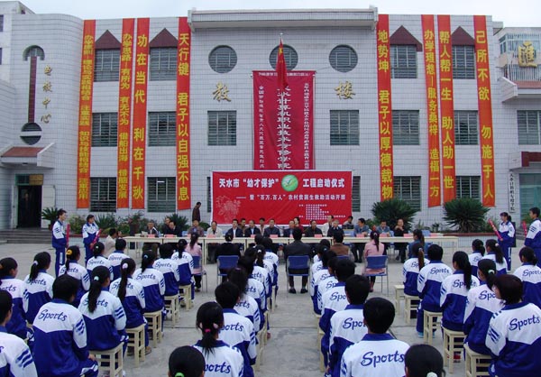 天水市“幼才保護(hù)”工程由天水市委統(tǒng)戰(zhàn)部、市教育局、市慈善總會(huì)、市工商聯(lián)、市婦聯(lián)主辦,市建設(shè)學(xué)習(xí)型城市發(fā)展戰(zhàn)略研究會(huì)共同發(fā)起的一項(xiàng)智力工程。工程依托具有一定資質(zhì)的辦學(xué)機(jī)構(gòu),免費(fèi)為家庭經(jīng)濟(jì)特別困難的優(yōu)秀高初中畢業(yè)生,提供繼續(xù)學(xué)習(xí)深造的機(jī)會(huì)。工程的主要分項(xiàng)目“百萬·百人”農(nóng)村貧困生愛心傳遞助學(xué)成才活動(dòng),由全國勞模,省、市人大代表,天水計(jì)算機(jī)專修學(xué)院院長王晉積極倡導(dǎo)并籌資100萬元啟動(dòng)資金,準(zhǔn)備為100名家庭困難的農(nóng)村優(yōu)秀學(xué)生提供資助。9月23日,“大齡女童班”和“優(yōu)智青少年班”兩個(gè)班正式開班,有75名農(nóng)村高初中貧困畢業(yè)生如期進(jìn)校。