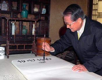天水在線訊 10月7日下午,在第四屆“海峽兩岸中華傳統(tǒng)文化與現(xiàn)代化研討會(huì)”閉幕式前,全國(guó)政協(xié)副主席張懷西為天水在線簽名。