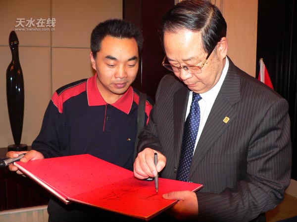 全國(guó)政協(xié)副主席張懷西為天水在線簽名(組圖)