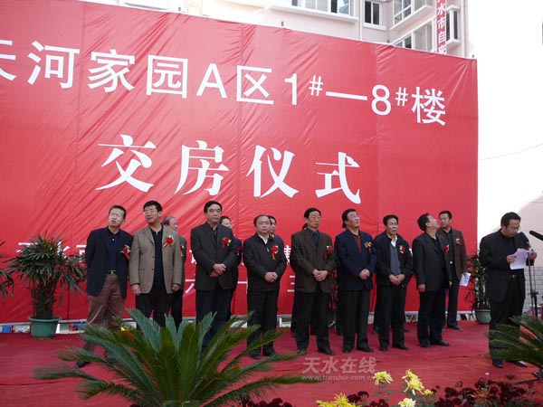 市四大組織領導張廣智、杜松奇、馮沙駝、王寶君、陶元德出席了當天的交房儀式,并為住戶代表發(fā)放了房屋鑰匙。